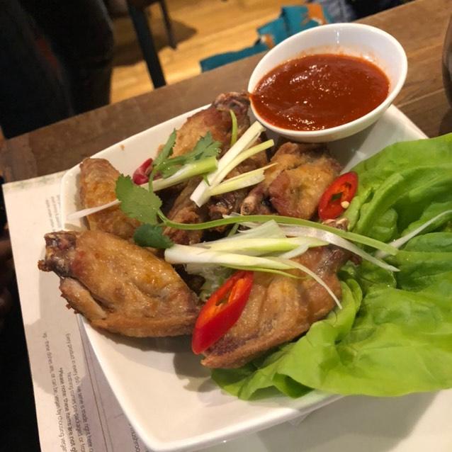 Starter- CÁNH GÀ (Seasoned, crispy chicken wings served with sriracha)