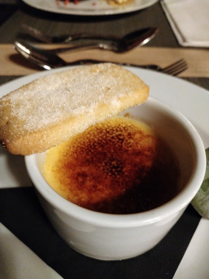 Tori had a classic Creme Brulee that had a good crack to the shell. It was sweet and smooth, and the orange shortbread was soft as cloud.