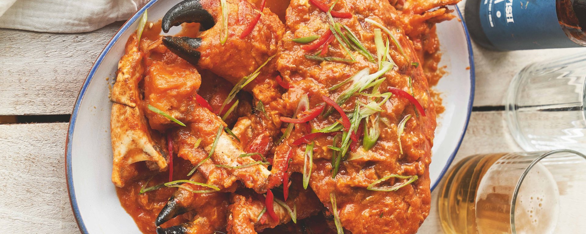 If you have ever visited Singapore you will have experienced the famous, very delicious chilli crab. It is the national dish. Easy to make, it is a firm favourite in the Tonks household, and chilli crab night is an occasion that brings the family together. Instructions for cooking a fresh crab are in the recipe for Dressed Crab on page 39 of my new cookbook.