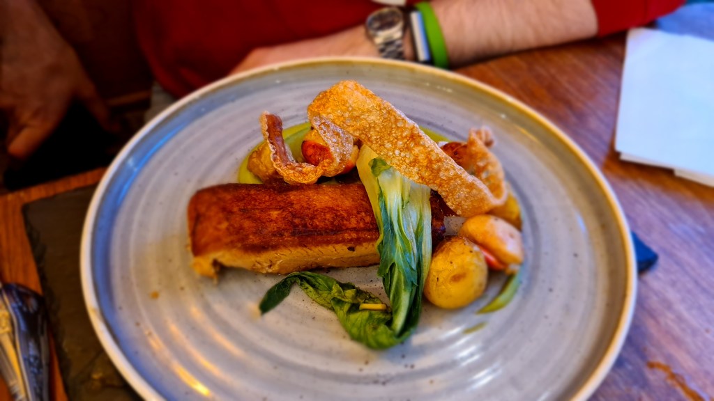 Still as charming and now with lots of covered outside area where they enjoyed drinks and sharing plates of delicious food before heading inside to the barn where they reserved a table for dinner. Plenty of choice on the menu – showcasing local produce and local ales. All the food was delicious and well worth the drive out to this lovely pub. They ate venison, beef burger, belly pork and desserts of sticky toffee pudding, chocolate mousse and panna cotta – not the same panna cotta as the last visit, but just as delicious.