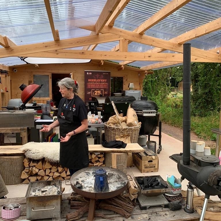 Sue has been lighting fires and clicking her tongs running her first lot of BBQ Baking and Cooking Classes at the UK BBQ School. Recently built and opened in May with Marcus Bawdon, AKA Mr CountryWoodSmoke at the helm, this site is adjacent to Fordmore Farm Shop in Cullompton. Sue’s courses involve bread baking, flatbread making, a meaty main course and vegetable sides using produce from the farm shop and of course there is a cake to bake too – all cooked on the BBQs! Marcus runs BBQ Basics and an Intermediate Course and if Indian food tickles your taste buds, Nila Ross-Patel, the Indian Cookery Tutor previously of Exeter Cookery School, is running courses where you will learn all about delicious Indian cuisine – also on the bbqs and fire pits.