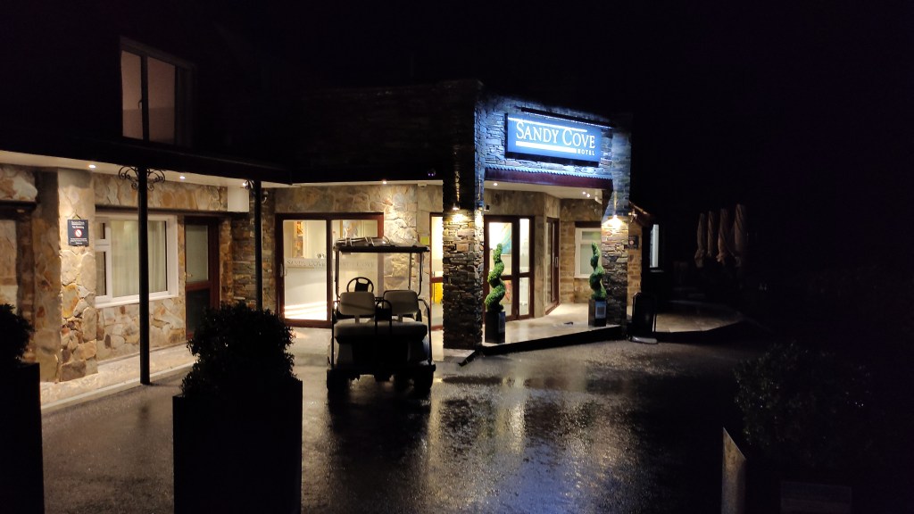 The only indication that we were as close to the sea as we were, was seeing a fishing boat bobbing up and down in the distance, lighting up the water around it as it glowed dreamlike from the darkness, had it been daylight we would be viewing one of the most scenic coastal views in the country. Unfortunately when we visited a few weeks ago, it was in the midst of a torrential downpour and it was dark, so I just had to use my imagination.