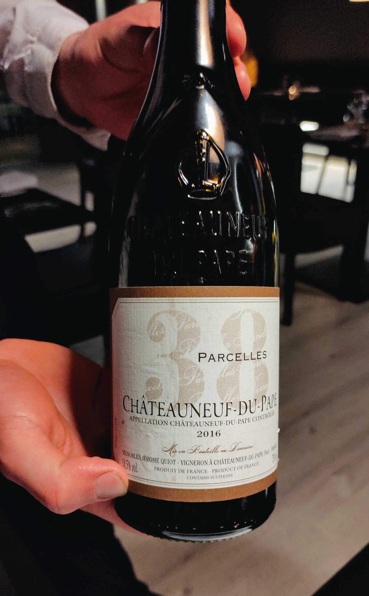 The guest of honour with this was another pefectly matched wine, this time a Jerome Quiot, Parcelles 38 Châteauneuf-du-Pape: a lovely light red that went perfect with with the dark rich tones of the smoky-chocolaty-venison.