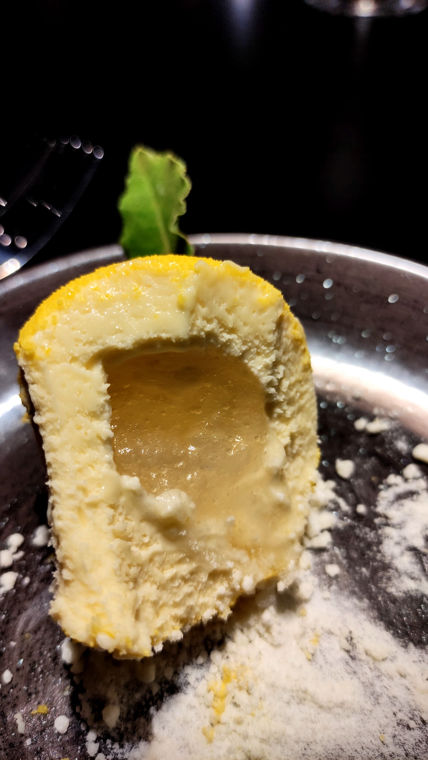 Sat on a bed of lemon sherbert, the inside was a fresh tangy liquid sauce that heightened the lemony-ness of this spectacular dessert. Not only was this creative and exciting, but it was an excellent palette cleanser for the final dish.
