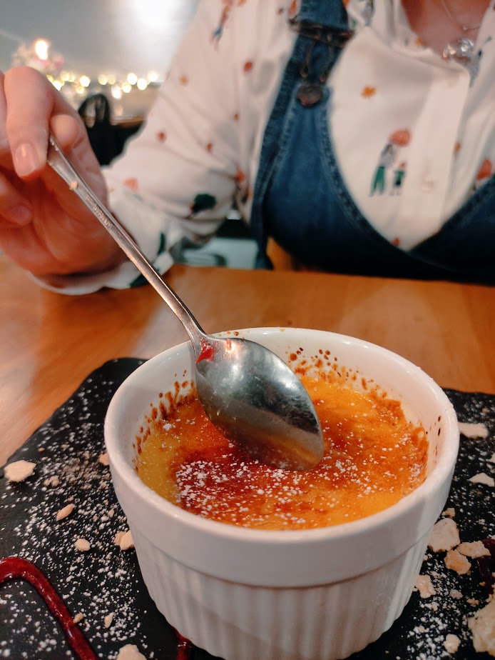 Crème Brûlée (£8) with a chocolate shortbread & Sticky Toffee Pudding (£8)