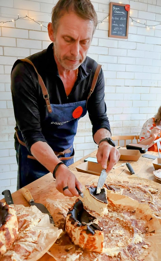 Julien explains that the cheesecakes are made from a blend of cream cheeses and exceptionally fresh eggs. He’s particular about the quality of the ingredients as he knows how important they are into getting a consistent and high quality product. Each cheesecake is slightly different and the timing will then dictate the caramelisation of the top (no it’s not chocolate!) as a good burnt Basque Cheesecake takes some of the flavour from that caramelisation, the crust if you will.