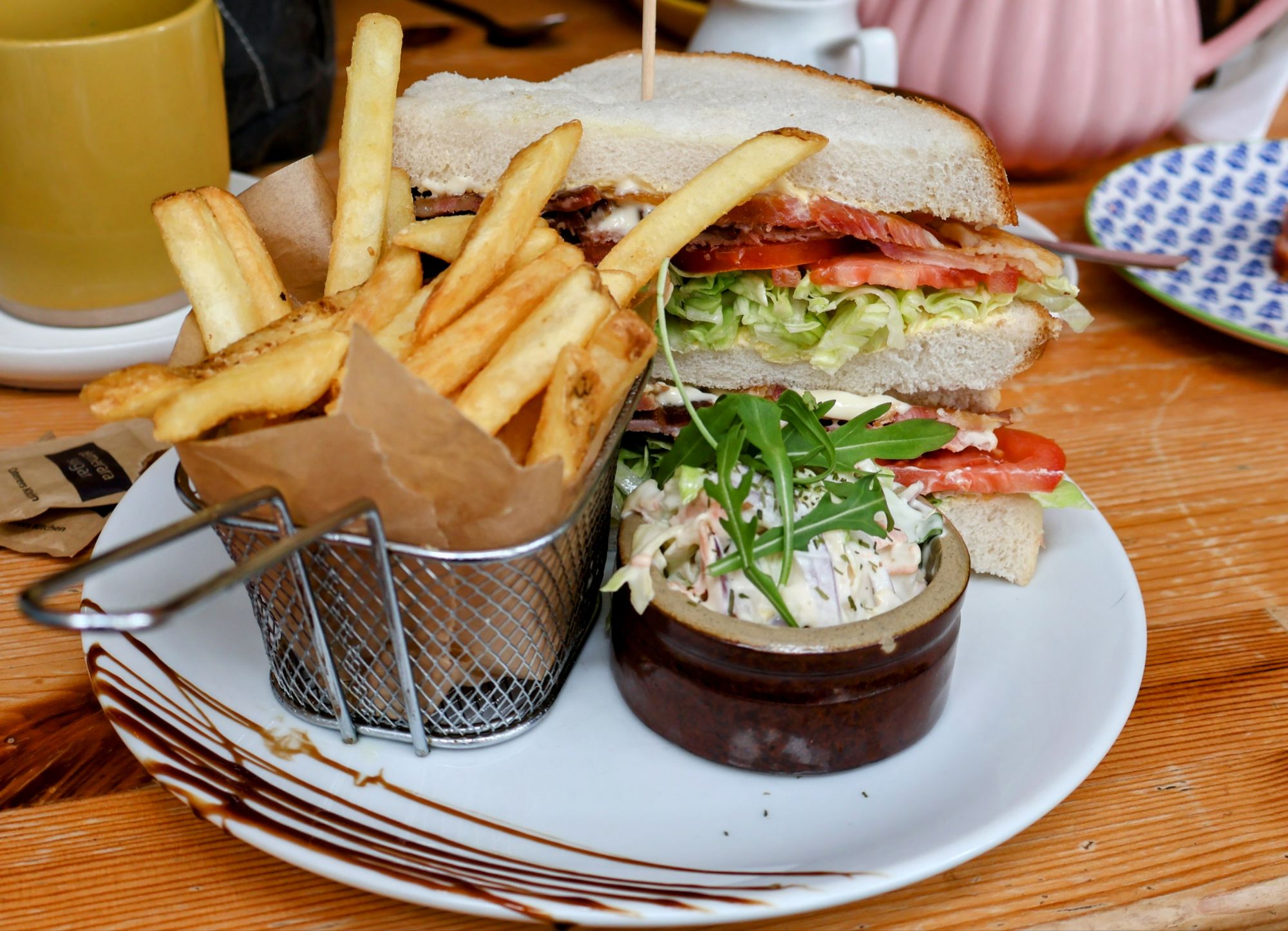 The menu is reasonably priced given the focus on quality, making it a perfect spot for breakfast, coffee and cake—or even something more substantial. When we visited, I went straight for The Big One. They serve breakfast until 2pm which is great news if you’re a late riser or if you’ve been out the night before! The Big One is for those with an immense appetite (£14.95) but there are smaller options available. T went for the Ultimate BLT Handcrafted Sandwich (£11.95), swapping crisps for fries for an extra £2.25 from their lunch menu which also includes paninis, toasties and jacket potatoes to mention a few things.