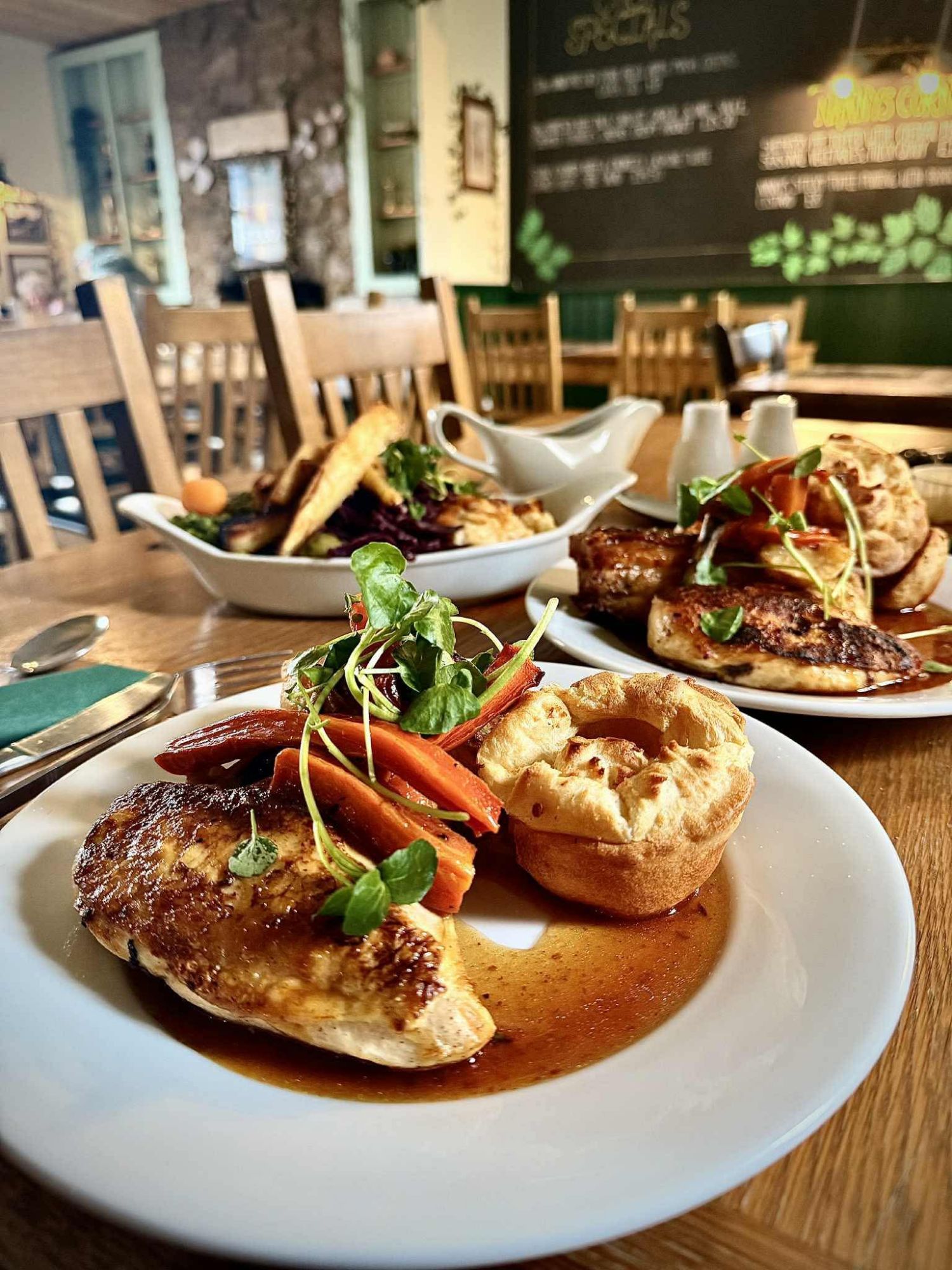 Sunday Roasts are already proving incredibly popular. Even though the new team has only been open a few weeks, people are booking quickly to secure their tables. Each plate lands with goose fat roast potatoes, roasted vegetables, stuffing balls, seasonal greens, braised red cabbage, cauliflower cheese, a Yorkshire pudding, and a deep red wine gravy and there are veggie options too.