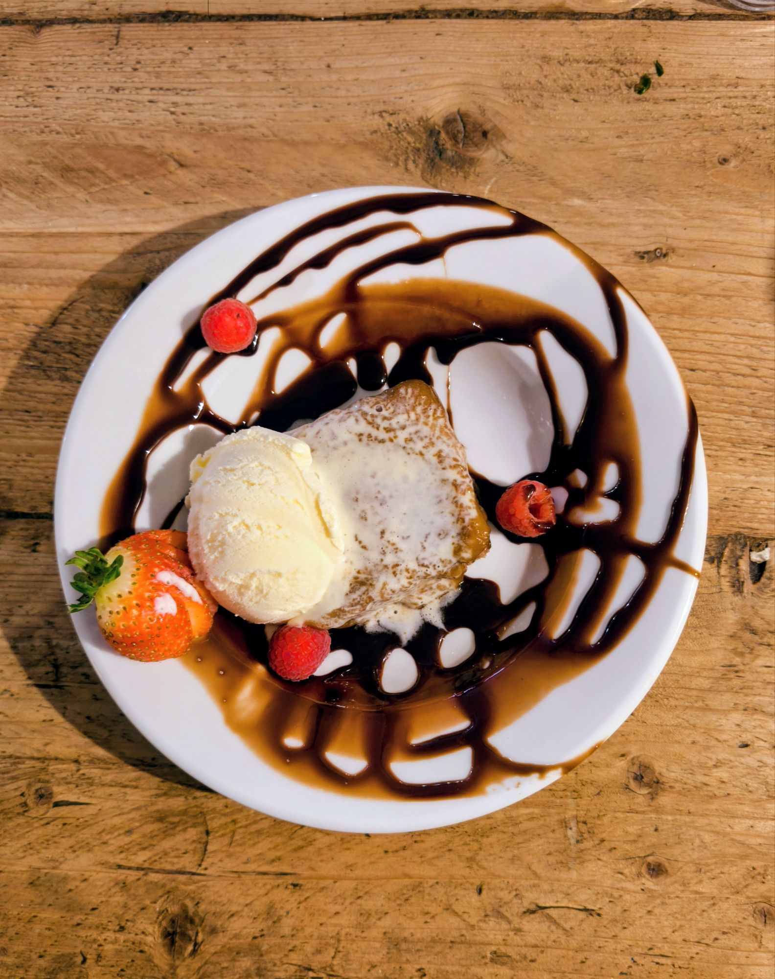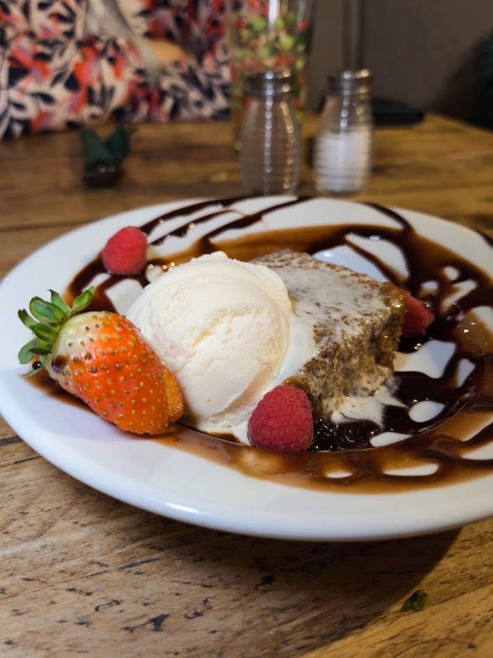 The braised beef was a standout for me; slow-cooked for eight hours in a rich sauce with shallot, garlic, and date. It came served on creamy mashed potatoes with greens and was topped with fresh, peppery rocket. The beef was incredibly tender and full of deep, satisfying flavour. At £15.50, it felt like excellent value for such a thoughtfully prepared, flavourful dish.